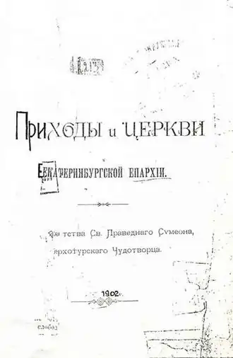 - ↑ Предисловие // Приходы и церкви Екатеринбургской епархии. — Екатеринбург: Братство Св. Праведного Симеона Верхотурского Чудотворца, 1902. — С. 647.