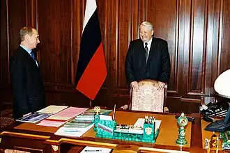По конституции, исполняющим обязанности президента при уходе действующего главы государства становится председатель правительства. 31 декабря 1999 года Ельцин объявил о своей отставке, и Владимир Путин, занимавший пост председателя правительства, автоматически стал исполняющим обязанности президента.