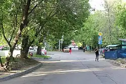 Проезд от Приютского переулка на Лесную улицу по дворовой территории закрыт (установлен дорожный знак и шлагбаум).