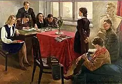 22. Как, например, на этой репродукции: 1952. Russian Soviet postcard Children Komsomol Stalin Socialist realism Grigoriev (англ.). eBay Inc. Дата обращения: 5 августа 2017. Архивировано 23 августа 2018 года.