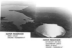 Диаметр воронки был около пятисот метров, глубина — сто метров, а высота навала грунта бруствера достигала сорока метров. Это был первый наш ядерный взрыв в мирных целях для образования ёмкости запасов пресной воды. Взрыв был проведён в русле речушки Чаган, которая летом обычно пересыхает. Считали, что весною, когда идёт активное таяние снега, воронка заполнится водой, которой хватит на всё засушливое в этих местах лето для водопоя животных соседних совхозов. Так и случилось: весною воронка заполнилась водой, а перед бруствером образовалось большое озеро глубиной один-два метра, залив около двух квадратных километров степной площади. Правда, эта заливная площадь летом высохла, а из искусственной воронки водопоя не получилось из-за сравнительно большой в ней радиации. Так и стоит сегодня это озеро, наводя ужас на жителей соседних деревень. А речка Чаганка нашла себе новое русло и течёт весною, как сотни — тысячи лет тому назад, огибая творение рук человеческих.
