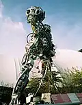 Проект сооружен в неиспользуемом каолиновом карьере. Вокруг оранжерей имеется извилистая прогулочная дорожка, с которой открываются виды на оранжереи, на обрабатываемые поля вокруг них, включая огороды, и на скульптуры, среди которых гигантская пчела и робот, изготовленный из старых электроприборов.