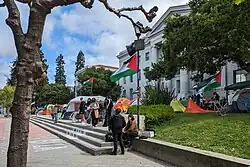 Пропалестинские протесты в университетских кампусах — серия акций протеста в кампусах университетов США и других стран в знак протеста против военной операции Израиля в Секторе Газа, проводимой в ответ на вторжение ХАМАС в Израиль. Акции протеста начались в апреле 2024 года в университетах США и распространились на ряд университетов других стран, включая Австралию, Великобританию, Францию, Индию, Канаду и Ливан[7]. По состоянию на 10 мая 2024 года протесты в США проходили в 130 университетах[8], а к июню 2024 года распространились на более чем 180 университетов по всему миру[9]. Основным центром начала протестов был Колумбийский университет в Нью-Йорке, что породило ассоциации с протестами 1968 года[10][11][12]. Студенты во многом имитируют протесты студенческих кампусов против апартеида в Южной Африке 1980-х годов[13].