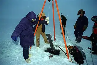 Про́рубь — отверстие, прорубленное в ледовом покрытии водоёма (реки, озера и т. п.)[1].