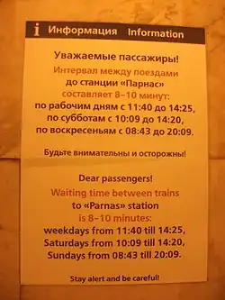 - ↑ Официальный сайт Петербургского метрополитена. Режим работы станций. Дата обращения: 29 мая 2012. Архивировано 17 декабря 2013 года.
