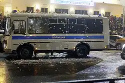 В Москве происходили столкновения между полицией и демонстрантами. Некоторые участники акций кидали в полицейских снежки[169]. Полиция применила против протестующих дубинки[170]. По сообщению СМИ, в полицейских также летели бутылки, фальшфейеры и дымовые шашки[171]. Митингующие, выйдя на проезжую часть, окружили проезжающий чёрный автомобиль с синим проблесковым маячком, бросая в него снежки (позже выяснилось, что это был автомобиль ФСБ). Далее, подойдя ближе, протестующие начали наносить по автомобилю удары ногами, погнули крыло, разбили стекло и нанесли телесные повреждения водителю[172][173]. По данным событиям были возбуждены уголовные дела по статьям 167, 213 и 318 Уголовного кодекса[174]. На Пушкинской площади протестующие стащили с фонарного столба человека с плакатом, посчитав содержимое плаката провокационным, сломали при этом плафон фонаря[175] и начали его избивать[176], но были остановлены другими протестующими. Всего по результатам столкновений пострадали трое росгвардейцев[177]. Вечером, после основных акций, небольшое число протестующих пришли к СИЗО «Матросская тишина», где находится Алексей Навальный, и начали скандировать: «Лёха, выходи!», а также один из них бросил бутылку с зажигательной смесью. Правоохранители задерживали протестующих с применением резиновых дубинок[178].