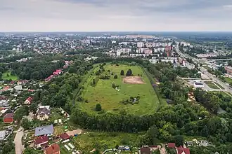 Аэрофотосъёмка с востока- Вид на ипподром (вверху по центру) с самолёта (хорошо виден, если полностью открыть фотографию).