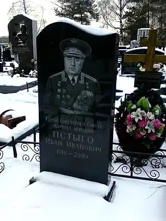 - ↑ Архивная копия от 16 апреля 2018 на Wayback Machine Памятник Маршалу авиации И. И. Пстыго открыт в Службе безопасности полётов авиации ВС РФ / mil.ru