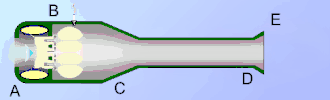 - 3. Давление в камере уравнивается с атмосферным, под напором воздуха в диффузоре воздушный клапан открывается и воздух начинает поступать в камеру, топливный клапан тоже открывается, двигатель переходит к фазе 1.