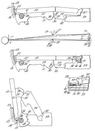 Замедление отпирания в системе Шварцлозе осуществлялось сразу двумя способами: сопротивлением пары шарнирно сочленённых рычагов и перераспределением энергии отдачи между двумя частями затвора. Пара рычагов — шатун, соединённый с массивным остовом затвора, и кривошип, связанный с коробом — находилась в переднем положении вблизи мёртвой точки. Ударный механизм включал ударник с бойком, скользивший в канале остова затвора, надетую на хвост ударника тарель с гребнем и укреплённую на тарели лодыжку.