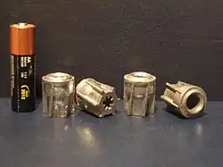 Материал пули — свинец. Диаметр пули по наружным рёбрам несколько больше, чем калибр оружия, поэтому при выстреле наружные рёбра сминаются, обеспечивая хорошую центровку пули в стволе.