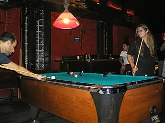 В американских барах игра, которую называют «straight eight» и которую проводят на монетоприёмных столах, подразумевает часто заказ ударов перед их выполнением (то есть по какому шару будут бить и куда именно, а также в каком порядке). Если удар был произведён не так, как заказывалось, то это оборачивается фолом для игрока (без произвольной установки битка) и переходом хода к противнику; если же в результате этого удара в лузу был забит восьмой шар, то игру засчитывается поражение[10]. Однако в барах нередко отказываются от этих правил.