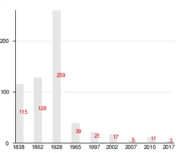 | 1838 | 1862 | 1928 | 1965 | 1997 | 2007[19] | 2010[20] |