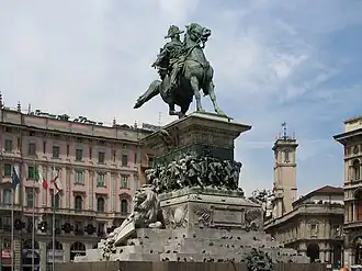 В 1896 году на площади воздвигнут памятник первому королю объединённой Италии — Виктору Эммануилу II.