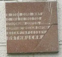 Мемориальная доска О. А. Пятницкому в Москве по адресу Тверской бульвар, 9