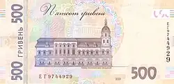 | Рисунок реверса | Реверс пятисот гривен образца 2015 года |