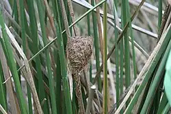 Пёстрый тачури обитает на болотах и плавнях вблизи озёр и рек. Часто селится на стеблях камыша. Гнездо строится между стеблей растений.