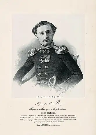 - ↑ Шабанов В. М. Военный орден Святого Великомученика и Победоносца Георгия. Именные списки 1769—1920. (Биобиблиографический справочник). — М.: Русскiй мiръ, 2004. — 922 с. — 3000 экз. — ISBN 5-89577-059-2.