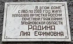 Лия Ефимовна Радина (15 апреля 1921, Самара — 8 августа 2000, Ульяновск) — советская и российская театральная актриса, народная артистка России (1992).