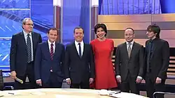 Михаил Зыгарь, Марианна Максимовская, Дмитрий Медведев, Ирада Зейналова, Сергей Брилёв и Вадим Такменёв 6 декабря 2013 года