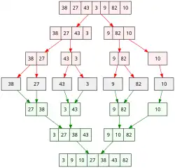 Основная идея схемы состоит в том, чтобы разложить задачу на две или более сходных, но более простых подзадач, решить их поочерёдно и скомпоновать их решения. Например, чтобы отсортировать заданный список из натуральных чисел, необходимо разбить его на два списка примерно из чисел каждый, отсортировать каждый из них по очереди и скомпоновать оба результата соответствующим образом, чтобы получить отсортированную версию данного списка. Этот подход известен как алгоритм сортировки слиянием.