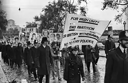 В Северной Ирландии Националистическая партия была главной политической партией, выступавшей против юнионистских правительств и раздела. Другие ранние группы, выступавшие против раздела, включали Национальную лигу Севера (образованную в 1928 году), Северный совет за единство (образованный в 1937 году) и Ирландскую лигу против раздела (образованную в 1945 году)[136]. До 1969 года в Северной Ирландии действовала система выборов, известная как множественное голосование[137]. Множественное голосование позволяло одному человеку голосовать несколько раз на выборах. Только налогоплательщики могли голосовать на местных выборах и в Палате общин Северной Ирландии. Владельцы предприятий часто могли отдать более одного голоса, в то время как лица, не платящие налоги, не имели права голоса. В Южной Ирландии множественное голосование на выборах в Dáil Éireann было отменено Законом о выборах 1923 года.