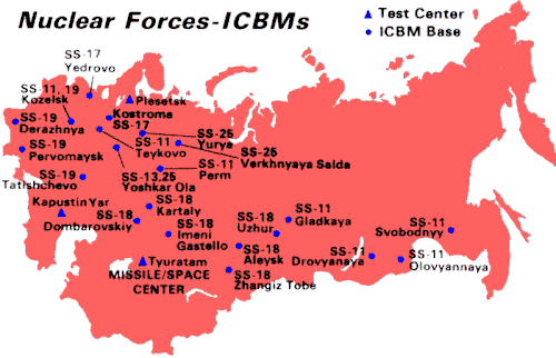 - Украина — 43-я ракетная армия, 176 шахтных пусковых установок с 1.272 ядерными боезарядами;