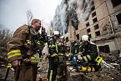 ![]() Жилой дом в Соломенском районе Киева после российской атаки | |