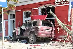 Всего были повреждены 66 жилых домов, 10 административных зданий и 67 транспортных средств[8][7].