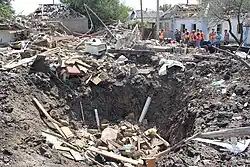 По первоначальным данным, от удара погибли 15 человек, а ещё пятьдесят ранены. Впоследствии количество убитых возросло до 25[4], а раненых — уменьшилось до тридцати одного. Из 25 человек пять человек сгорело заживо в машине (включая ребёнка шести лет). По заявлениям украинских властей, 10 из погибших были мирными жителями[1].