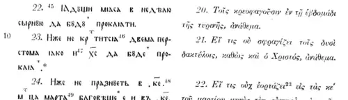 - ↑ Бенешевич В. Н. Древнеславянская кормчая. XIV титулов без толкования. Т. 2. Архивная копия от 24 сентября 2015 на Wayback Machine — София, 1987. — С. 168