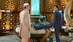 После того как Доктора попрощались друг с другом, Пятый Доктор посоветовал Десятому поднять щиты. Но было уже слишком поздно. Корабль «Титаник» врезался в ТАРДИС, что является концом серии «Последний Повелитель Времени» и началом «Путешествия проклятых».