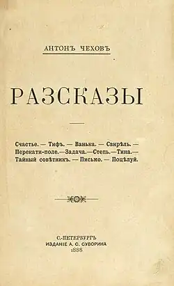 «Рассказы» — так озаглавлен сборник рассказов А. П. Чехова, впервые изданный типографией А. С. Суворина в 1888 году и выдержавший 13 изданий за 11 лет.