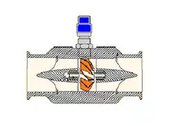 Диафрагма представляет собой диск со сквозным отверстием, вставленный в поток. Дисковая диафрагма сужает поток, и разница давлений, измеряемая перед и за диафрагмой, позволяет определить расход в потоке. Этот тип расходомера можно грубо считать одной из форм Вентури-метров, однако имеющую более высокие потери энергии. Существует три типа дисковых диафрагм: концентрические, эксцентриковые и сегментальные[2][3].