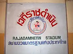 - ↑ Rajadamnern Stadium (англ.). Muay Farang - Muay Thai News (29 июня 2015). Дата обращения: 12 августа 2019. Архивировано 2 октября 2019 года.