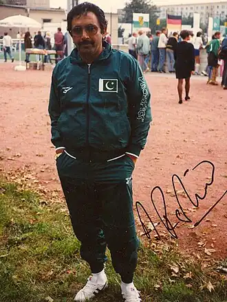 В 1971 году в составе сборной Пакистана завоевал золотую медаль на первом чемпионате мира в Барселоне.