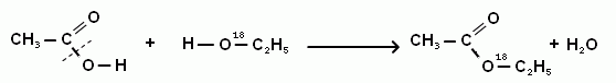 Механизм реакции подтвержден экспериментом с использованием изотопных меток: при использовании спирта, меченного изотопом 18O, метка оказывается в составе сложного эфира: