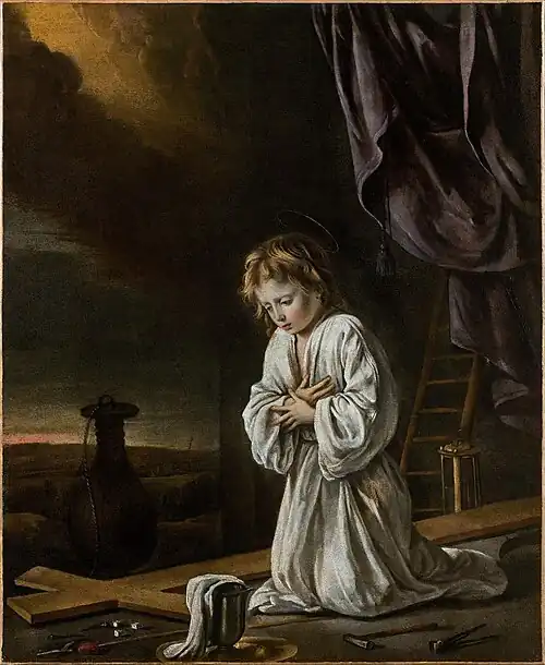 | Jésus enfant agenouillé devant les instruments de la Passion | |
