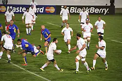 Особую роль в развитии грузинского регби играет Франция, в чемпионате которой играет достаточно много грузинских игроков[9]: так, на матч против Ирландии чемпионата мира 2007 года в заявку грузинской команды было включено 18 игроков французских клубов из разных дивизионов[9].