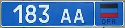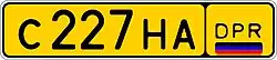 По внешнему виду аналогичны российским, но количество цифр сокращено до трёх, а в окне кода региона — флаг ДНР и код DPR.