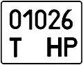 По внешнему виду аналогичны мотоциклетным: квадратной формы, цифры одного размера с буквами. Формат: три цифры, две буквы.