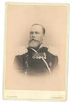 | Награды и премии | Орден Святой Анны 3-й ст. (1874), Орден Святого Станислава 2-й ст. (1874), Орден Святого Георгия 4-й ст. (1877), Орден Святой Анны 2-й ст. (1878), Орден Святого Владимира 3-й ст. (1879), Орден Святого Станислава 1-й ст. (1894), Орден Святой Анны 1-й ст. (1898), Орден Святого Владимира 2-й ст. (1902), Орден Белого Орла (1905), Орден Святого Александра Невского (1910). |