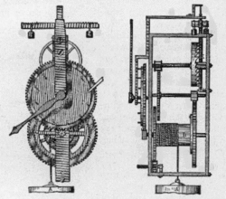 - Источник энергии (двигатель) — заведённая пружина или поднятая гиря.