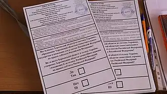 - ↑ Olga Aivazovska. Rigged Russian referendums: Putin’s plan to annex occupied Ukraine (англ.). Atlantic Council (4 сентября 2022). Дата обращения: 14 марта 2023. Архивировано 14 марта 2023 года.