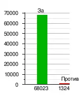 - За принятие проекта закона АТО Гагаузия «Об отложенном статусе народа Гагаузии на внешнее самоопределение» проголосовало 68023 избирателей, против - 1324.