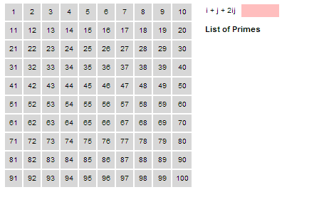 где индексы пробегают все натуральные значения, для которых , а именно значения и Затем каждое из оставшихся чисел умножается на 2 и увеличивается на 1. Полученная в результате последовательность представляет собой все простые числа в отрезке .
