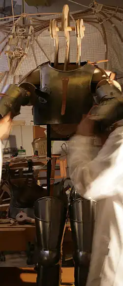 На каркас робота была надета германо-итальянская рыцарская броня, он был запрограммирован имитировать человеческие движения (приподниматься и садиться, двигать руками и шеей) и имел анатомически правильное строение челюсти. Технология частично основывалась на исследованиях Леонардо в анатомии, в частности, Витрувианском человеке.