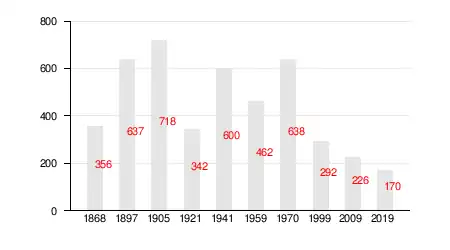 На 1 января 2018 года насчитывалось 173 жителя в 90 хозяйствах, из них 13 моложе трудоспособного возраста, 87 — в трудоспособном возрасте и 73 — старше трудоспособного возраста[4].
