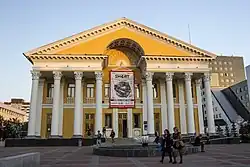 Построен в 1949–1954 годах по типовому проекту советского архитектора С. И. Якшина в стиле сталинского ампира на углу улиц Ленина и Чернышевского. Проект кинотеатра по первоначальному названию «Юбилейный» впервые представлен в 1949 году, летом того же года утверждён. Открыт в июне 1953 года[8].