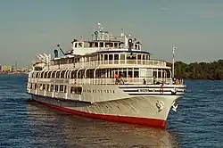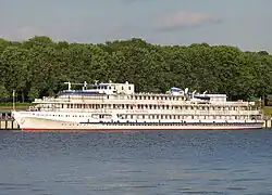 | сентябрь 1954 | 13003 | ![]() | Алексей Толстой | ВОРП, Горький | ранее Н. Гастелло; модернизирован, надстроена ещё одна палуба; в 2010-х имел необычную двухцветную окраску с чёрно-синим низом по подобию морских лайнеров начала-середины XX в. | ||